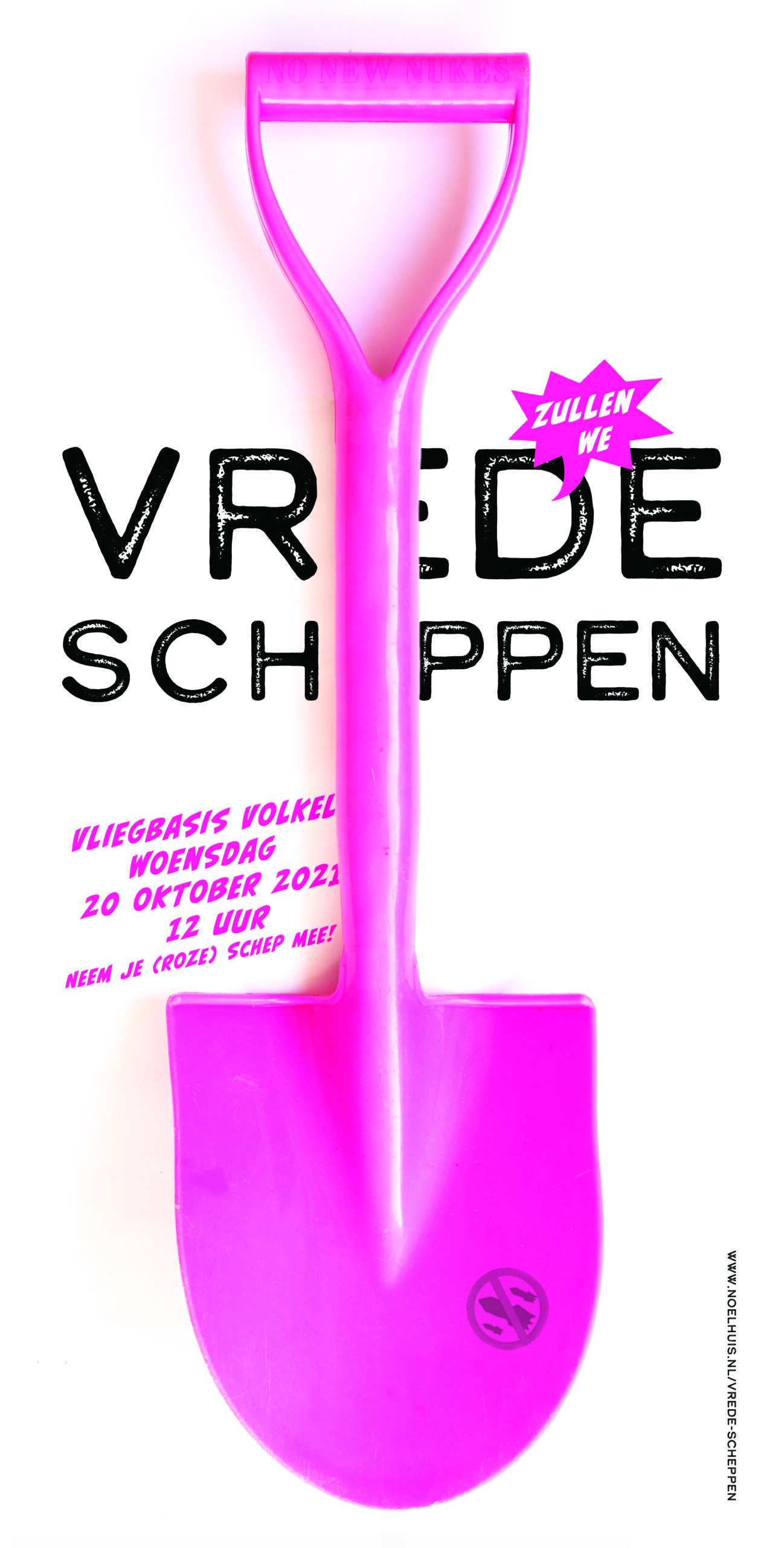 Wie wil kan meezingen, mee picknicken, en/of mee scheppen tot de politie of marechaussee sommeren om te stoppen. Je kan echter ook na zo’n sommering verklaren dat de toekomst van onze kindskinderen nu om onze inzet vraagt en dat het de agent vrij staat om je aan te houden, maar dat je rustig door schept. Wie weet kun je dan later voor de rechter en de samenleving verantwoording afleggen, waarschuwen voor nieuwe bommen en pleiten voor een kernwapenvrije wereld. Als je niet kan komen en wel mee wil doen, kun je ook een (roze) schepje met een vredeswens opsturen en dat nemen we dan mee.